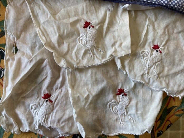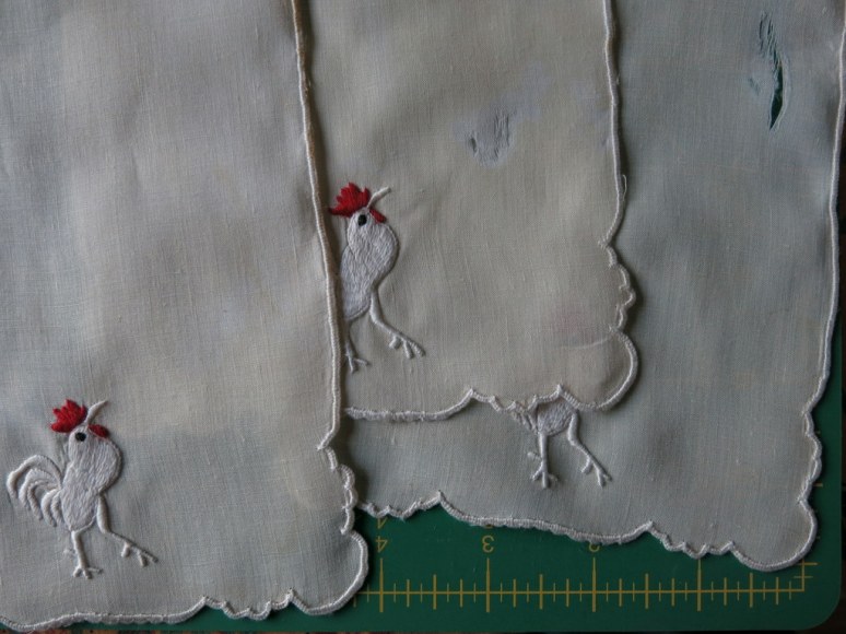 A Hitty friend gave me four small embroidered cloths which were worn and stained.