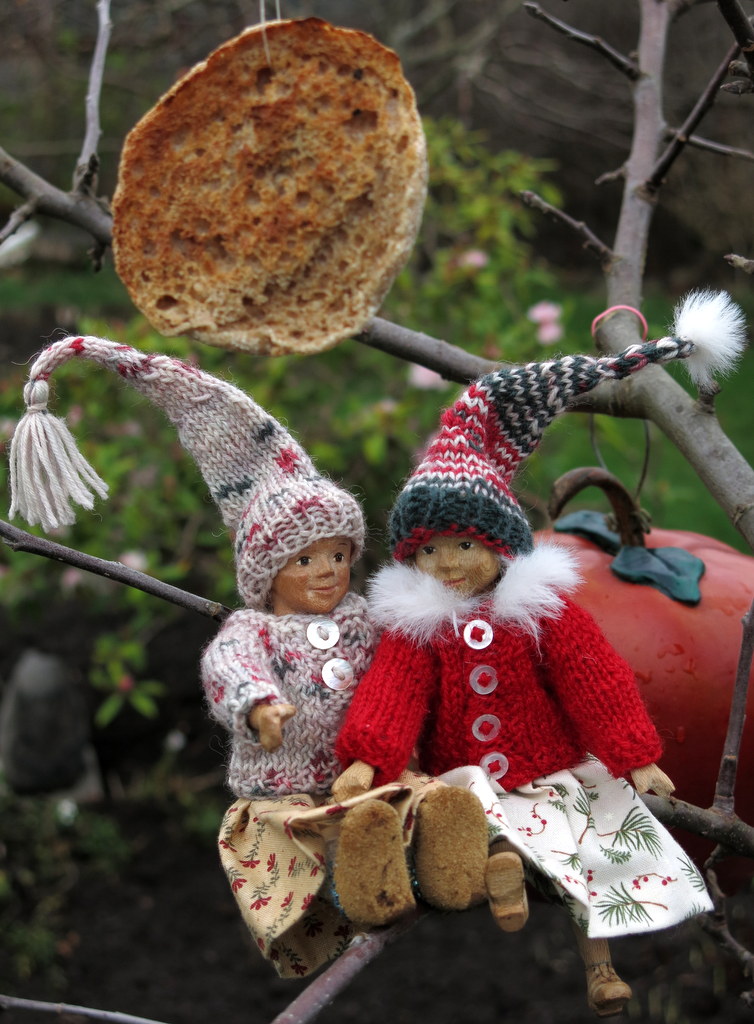 how very charming….traditions that I have been unaware of! How nice to learn new things…I believe I shall hang some toast from my red Mullberry tree tomorrow…not too late think! I will not be as cute as these little girls…love their sweaters and those hats!!!