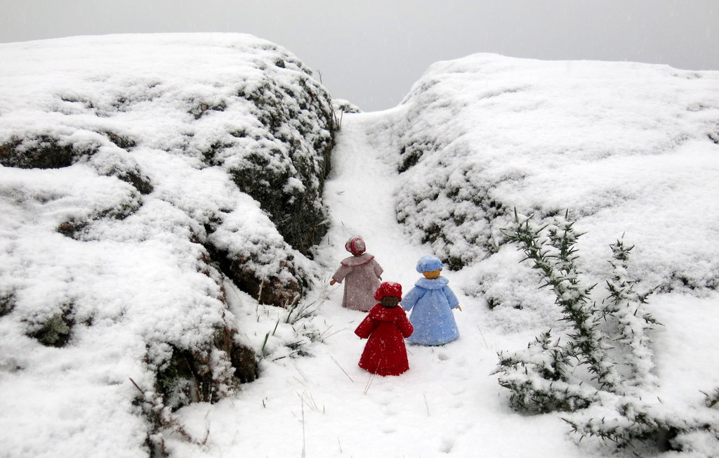 Henrietta, Floradora and Arianell were also cold! I let them ride home snuggled in my new snowflake hat.