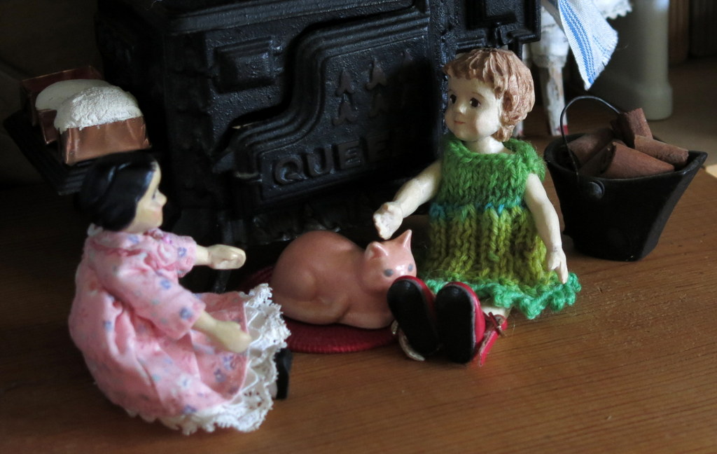That is the prime warm spot in the house – cats and small Hittys agree! Jane is constantly having to step over them, but she doesn’t mind!