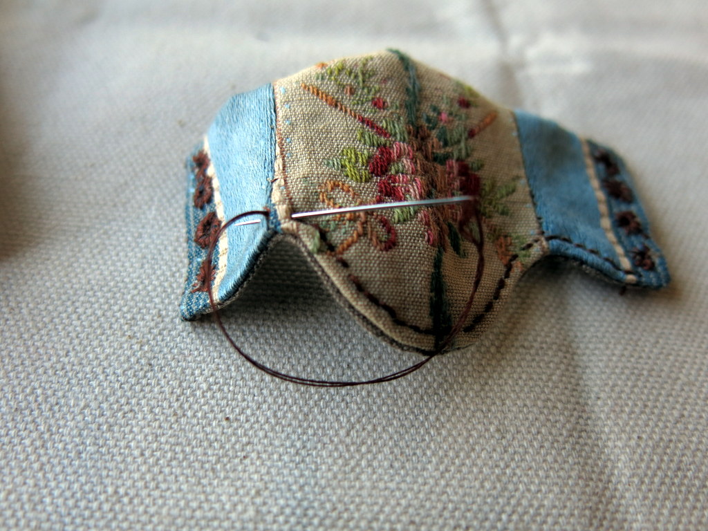 …and brocade for the outer surface. If this fabric looks familiar, it is because I used some of it to make 18th Century pockets and a pair of  shoes for a special doll…(Click here for a link to Lady Frances’s complete toilette)