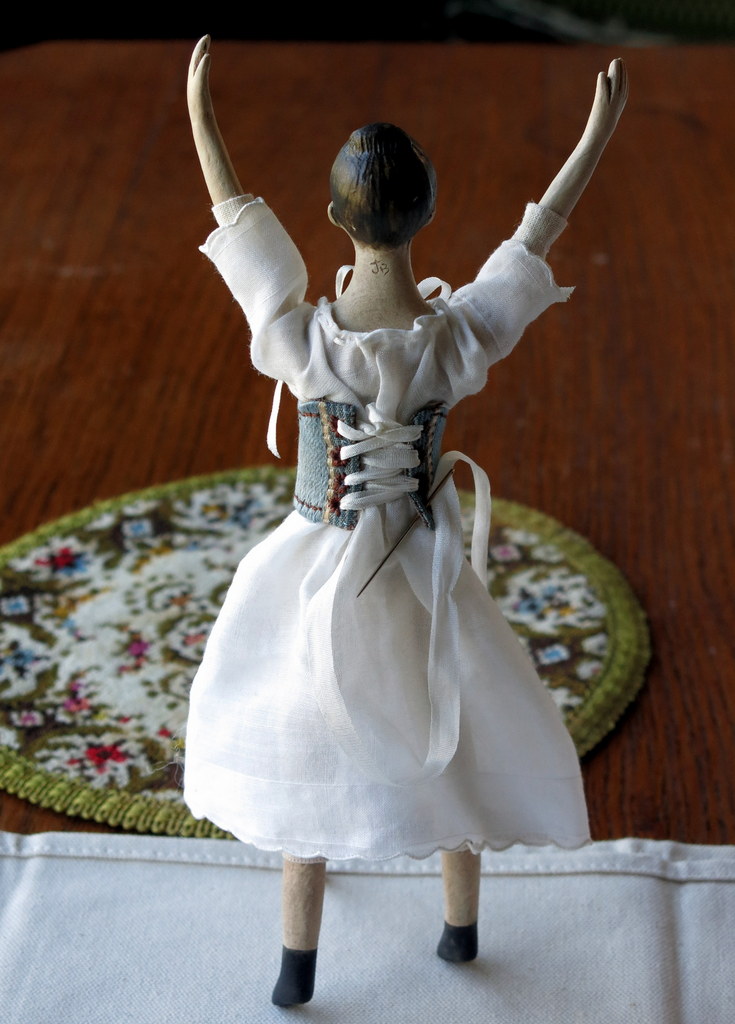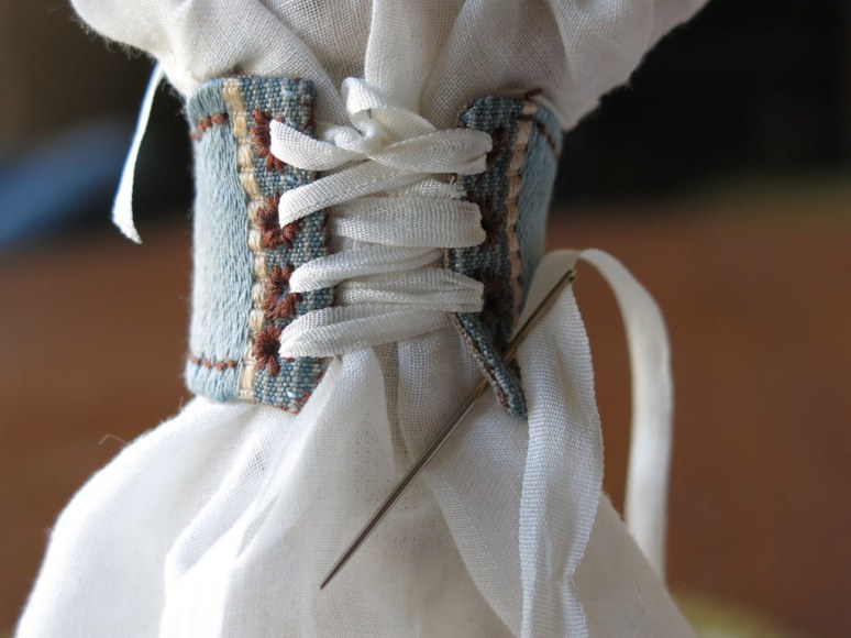 5. whatever Eve’s era she is beautiful and the corset is lovely. Can’t imagine stitching those tiny grommets. Only you would think of making a corset for a 7 inch doll, can’t wait to see what comes next.