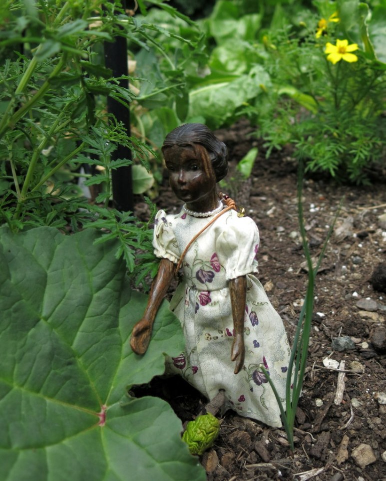 Perdita loves the veggie patch, especially the little Leek avenue…