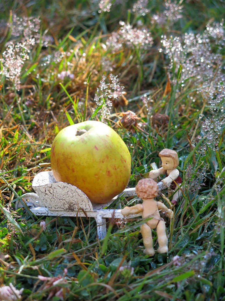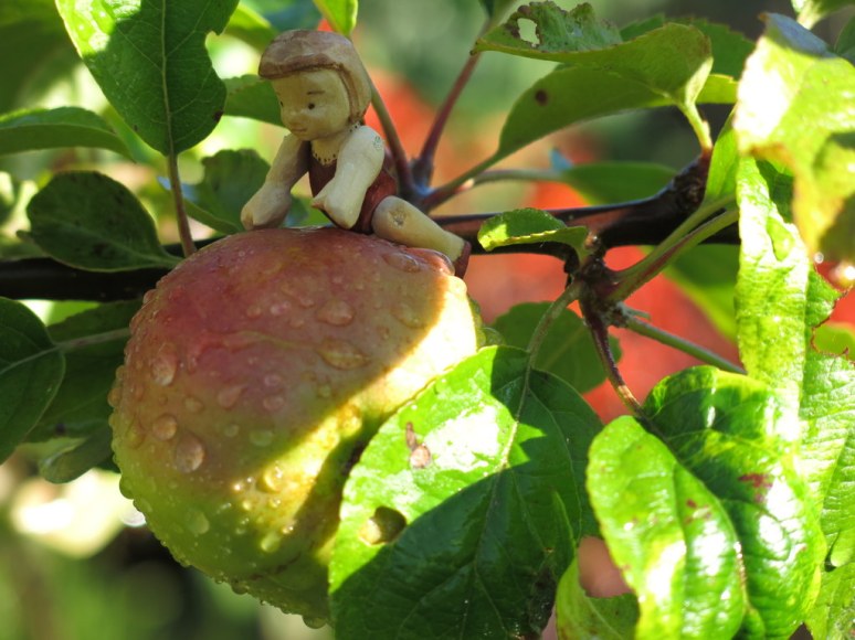 1. How delighted you humans and little woodens are to have those treasured apples to savor this season. Have fun!