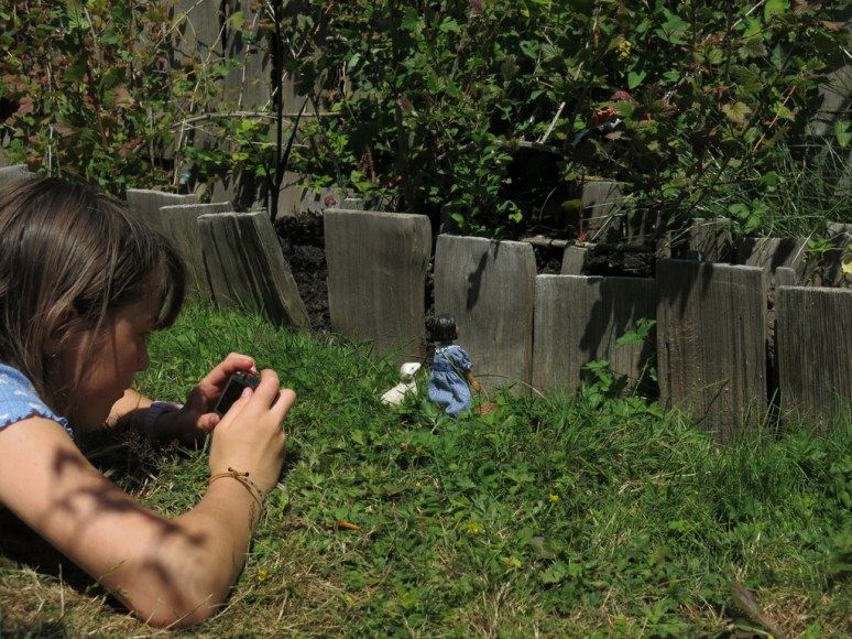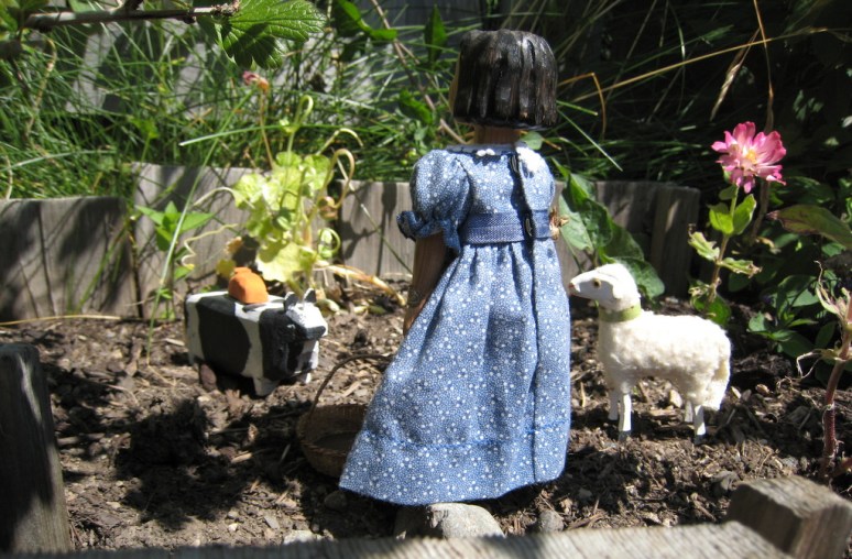 Luna and the lamb went out to the gooseberry bushes with their beautiful new collecting basket, but there was a guardian in the bush…