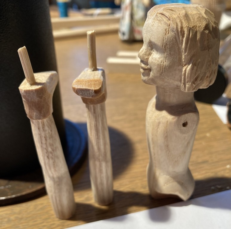 We whittled and chipped and tinkered, checking the fit as we went along, and once everything seemed to work, the dolls were ready to sand and paint.