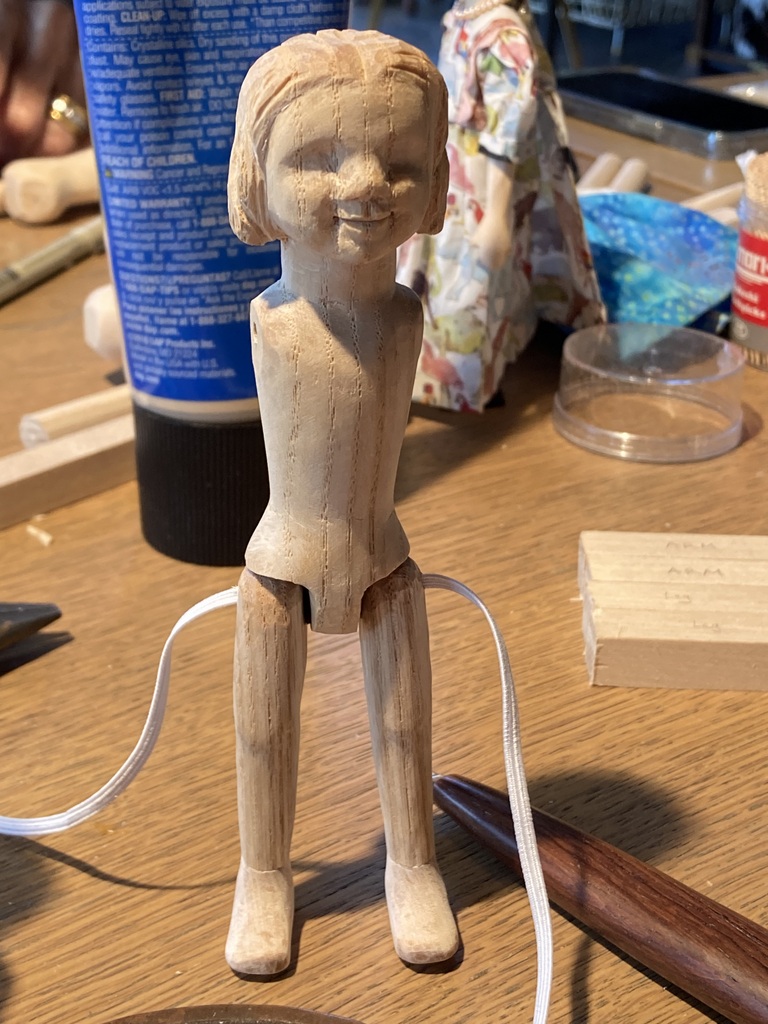 Birch girl came home too, and will be chipped away at here…four days of carving wasn’t quite enough for two hardwood dolls, but we sure had fun! Thanks so much to my friend for the excuse to make more dolls, and for the fun and the food and the friendship!