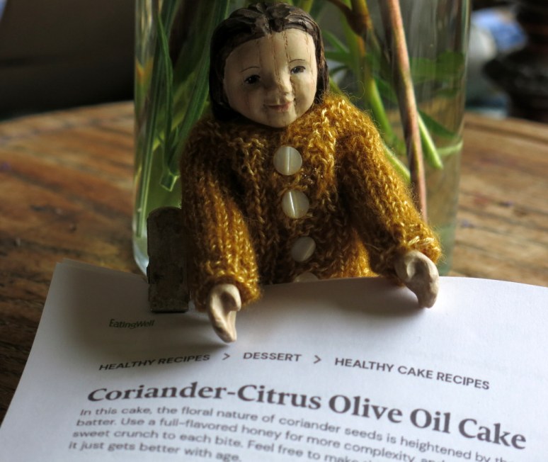Hitty Coriander has such an interesting name! She is keen to try this new recipe for Coriander-citrus Olive Oil Cake that we found on the internet, but it takes at least three weeks to make…