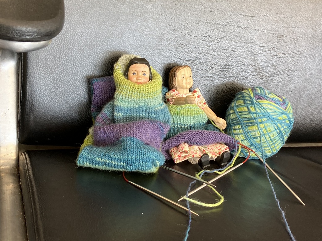 Meanwhile, Rose, the most experienced Quimper Hitty knitter gave Vanilla some advice on knitting the Mystery Christmas Stocking knit-along with Arne and Carlos.