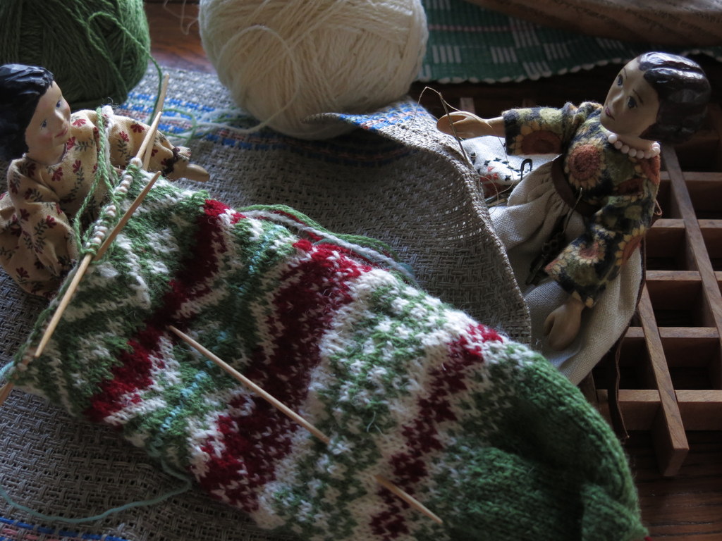 …and Coriander is knitting on day 13 of the Arne and Carlos’s Mystery Stocking…