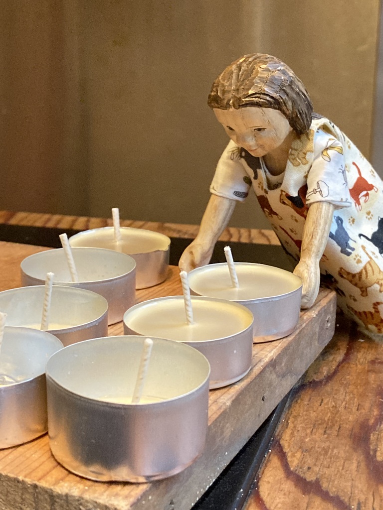 …young human helped crimp the tabs around the wax-dipped wicks!