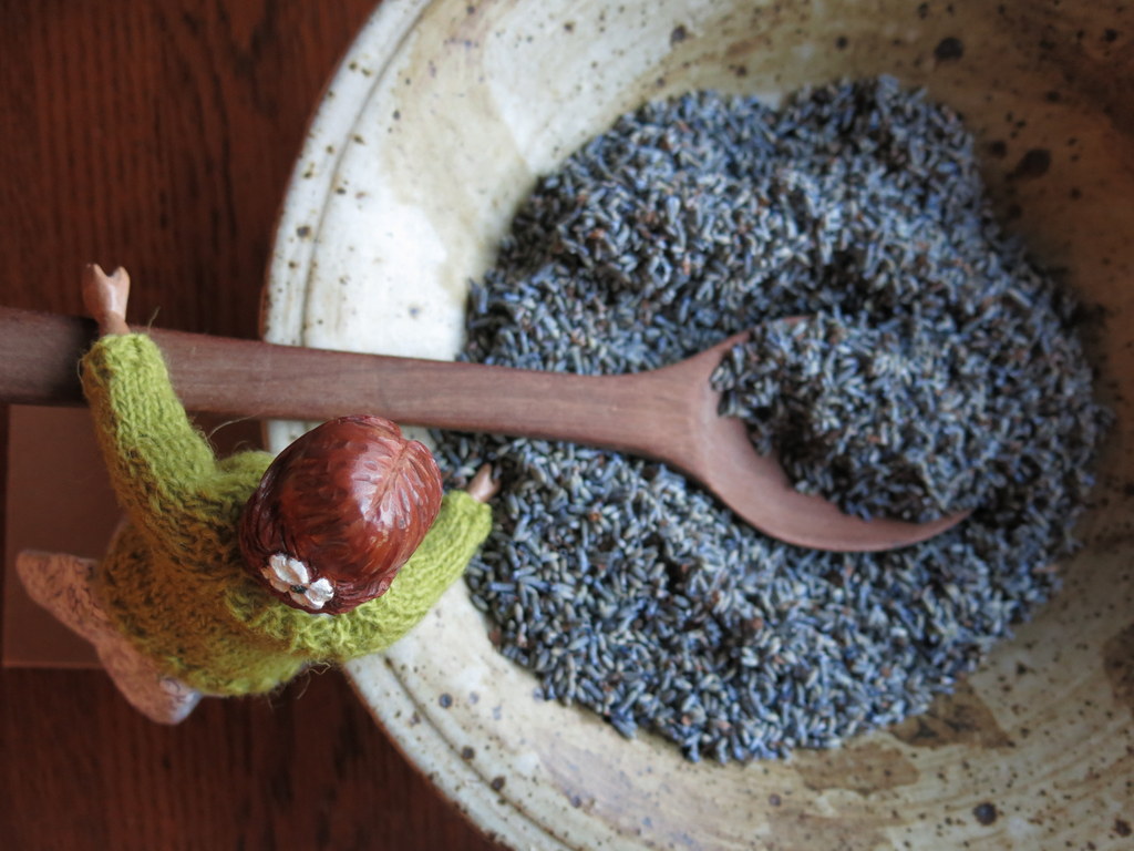 …then loaded scoops of lavender and scoops of flax seeds into silk bags, making sweet and scented eye pillows for birthday and Christmas gifts.