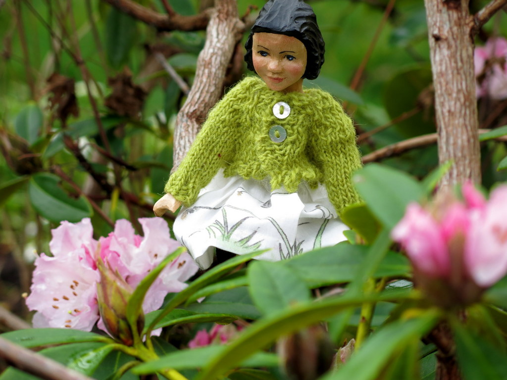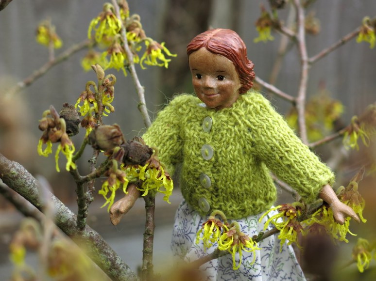 • We love the wool that these sweaters are made from – such a spring-like and encouraging green! I have seen Witch Hazel as both bush and tree – this one is a little bush as yet but it wants to be a tree!