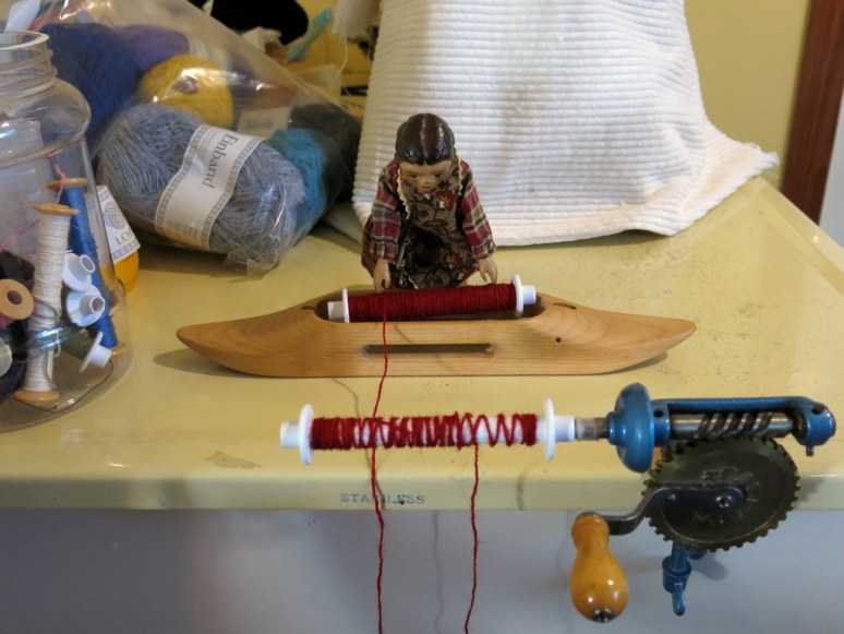 Winding bobbins is fun! The bobbin is like a big spool, carried by the wooden shuttle…