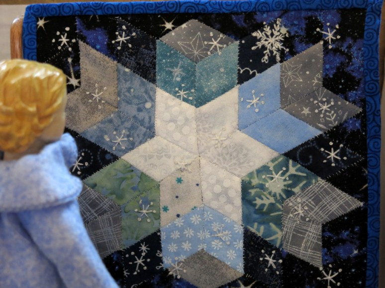 …a sweet quilt made for us by a Hitty friend in Ontario (and a cake and some chocolate, and a little rag doll from a Hitty friend in Missouri)…