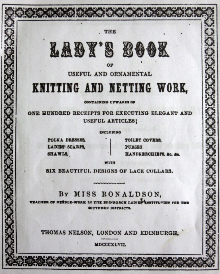 …and using a pattern for the “Ends of a Lady’s scarf” from the Lady’s Book of useful and ornamental knitting and netting Work, published in 1847…