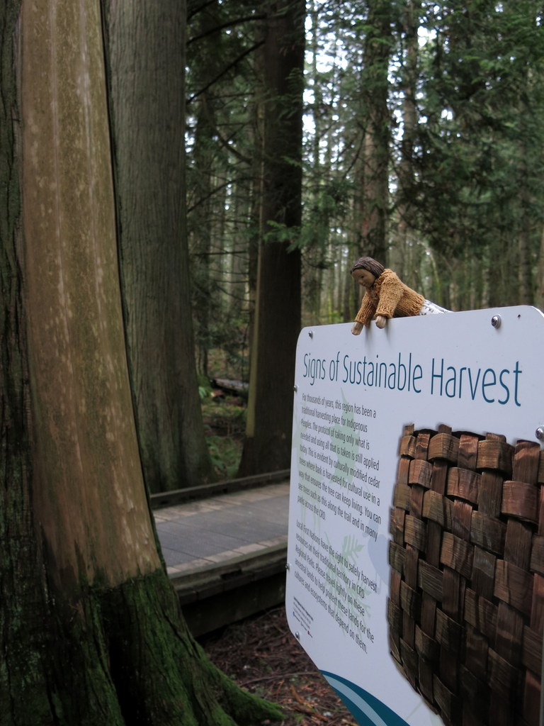 Some informative signs explain how First Nations people can sustainably harvest bark from the cedar trees…
