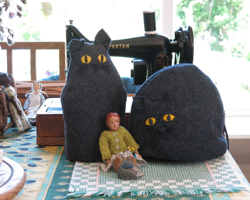 The cats do watch me every time I stroll anywhere near the food dishes in the kitchen! The Cathi Jefferson tea pot is our 3 cup pot – we have a larger Cathi one that does for larger human tea parties, and an adorable tiny one that the Hittys like to use at tiny banquets! I looked up the serial number of the Singer Spartan, and it is from 1959, which surprised me, as I thought it was older than that. I do have very fond memories of learning to sew on it with my grandmother. I taught all my kids to sew on it too, and now my granddaughter. I won’t be going to Fired Up this year but some members of my family will be there.