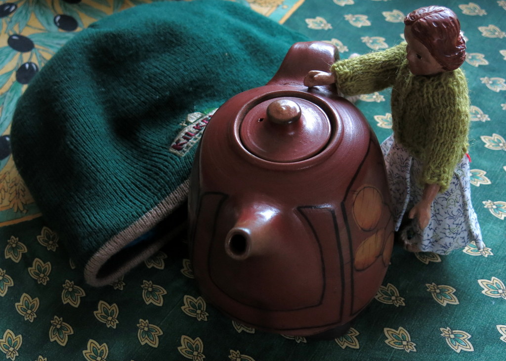 …he didn’t need a touque at that moment and I acquired it from him because it was a perfect fit to use with my small teapot, though it didn’t actually keep the tea all that warm for all that long.