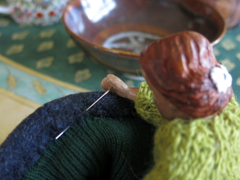 Thank you! The old felted shirt is thick and warm…the batting is from one of those neverendingly shrinking (but not disappearing) scraps, and the random hat, well it needed a new purpose in life!