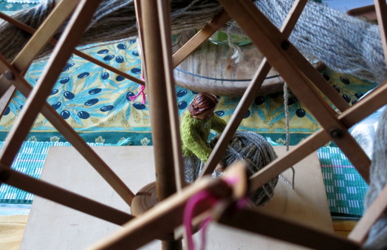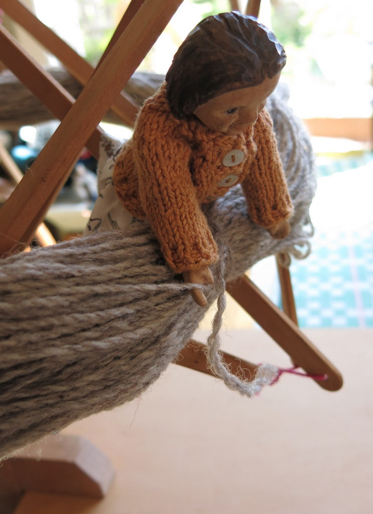 …the swift spins round as the yarn comes off – Coriander thinks it makes a delightful merry-go-round!