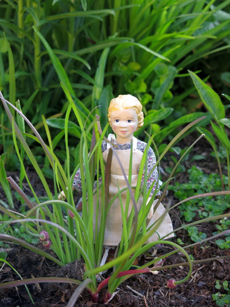 Awww thanks, Henrietta is blushing, a bright pink-cheeked glow. She admires the onions too, and doesn’t mind the Hitty cupboard smelling like chives, both raw in the bouquet, and in purple soup form in Jane’s kitchen!
