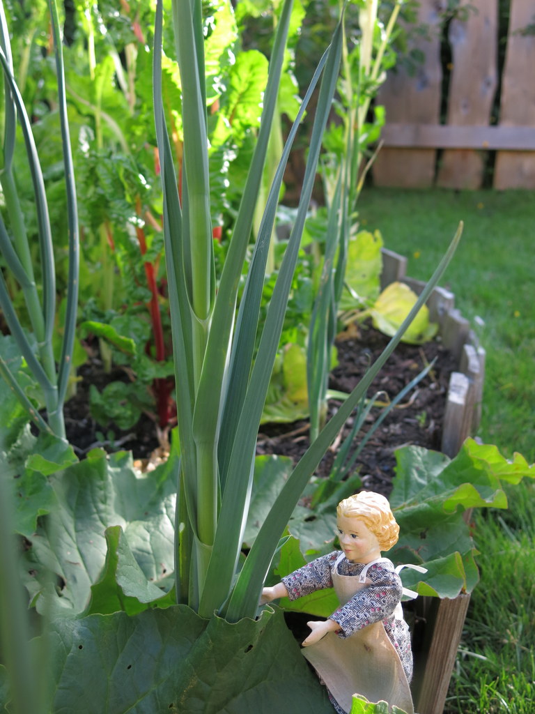 I really admire how you lead us through the garden (I should say, the little wooden folk lead us through) and pick out the details of various plants. You have such interesting variety just among your onion family.