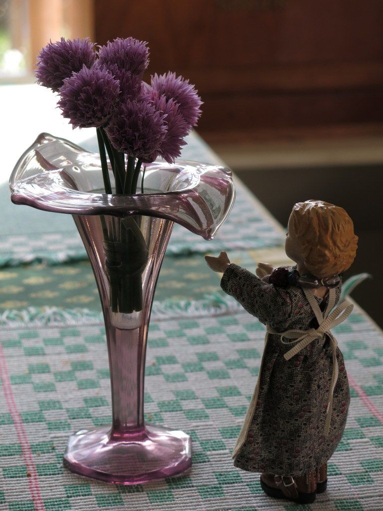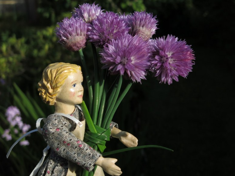 Henrietta picked some chive flowers…