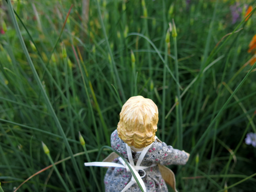 I really admire how you lead us through the garden (I should say, the little wooden folk lead us through) and pick out the details of various plants. You have such interesting variety just among your onion family.