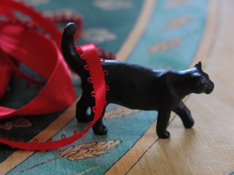 …a little black cat finally emerged from the red tape…