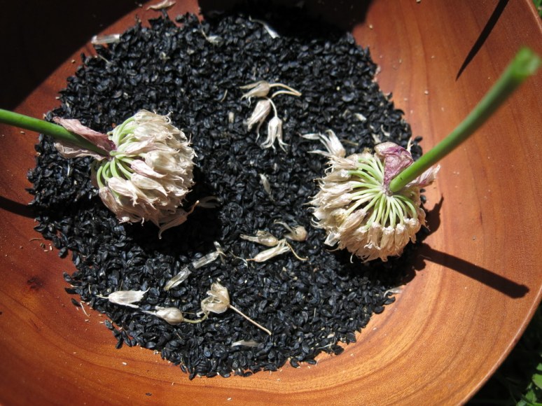 I like chive seeds for a delicate oniony flavour; I can’t eat onions without digestive problems, so any good substitute is welcome. That was a good seed harvest, lots of seed for both eating and planting for next year.