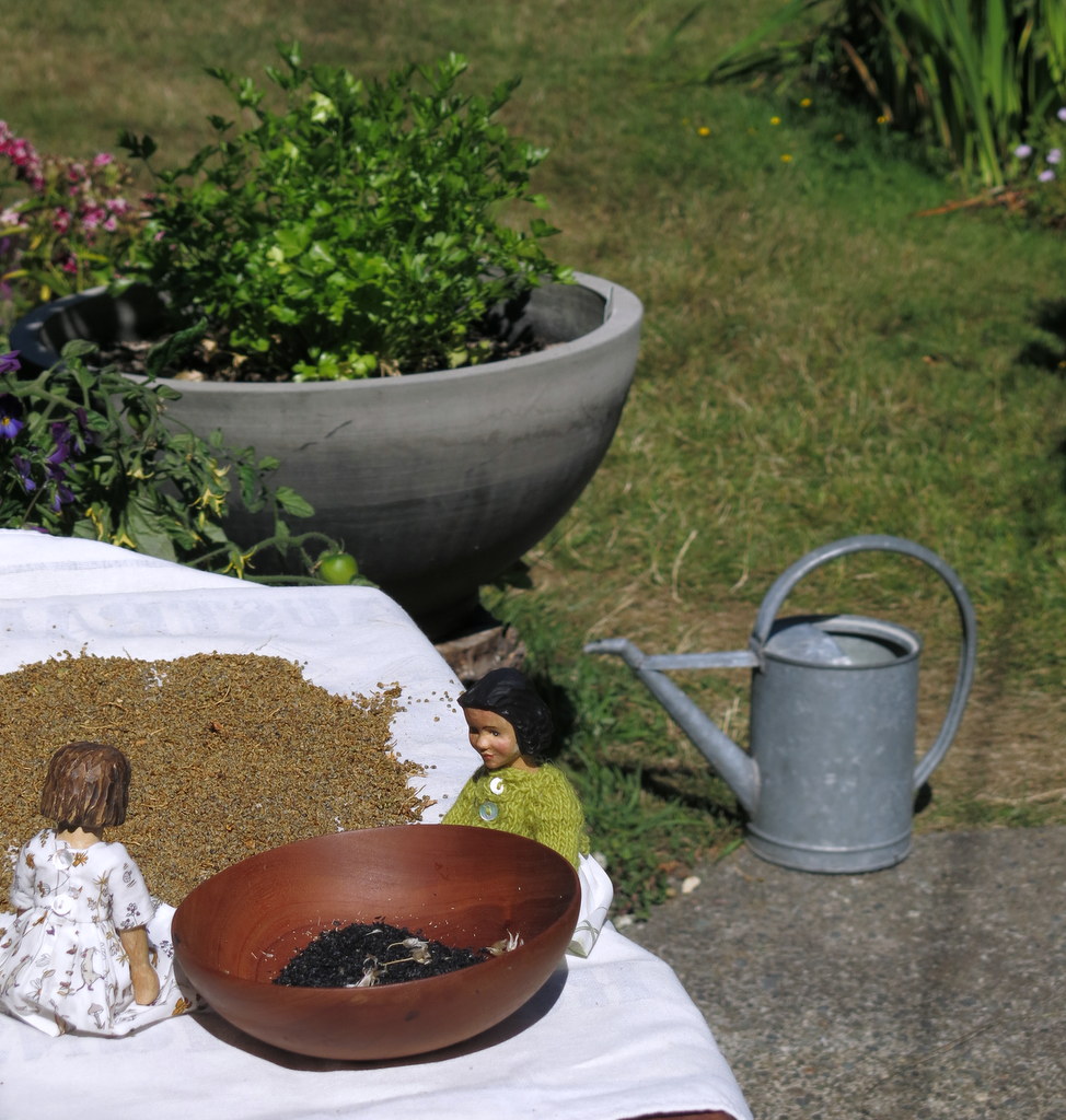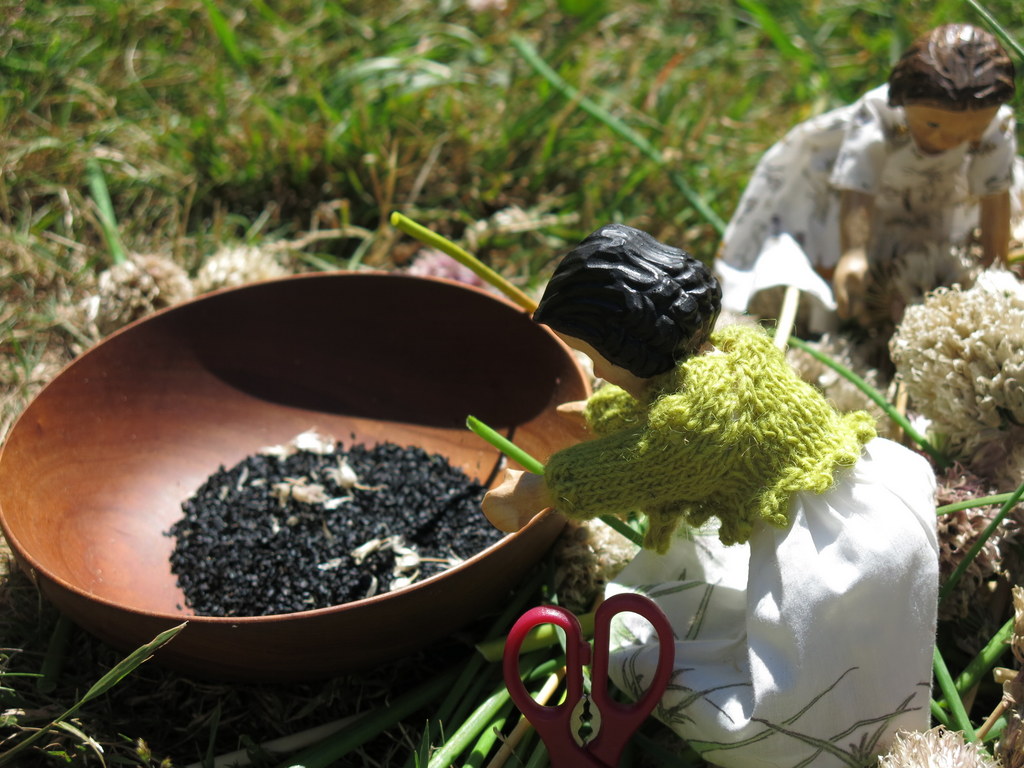 The chive seeds (which will be used in cooking) are drying in the warmest corner of the garden along with the Good King Henry seeds (which can be eaten like millet, though I have not yet tried them)!