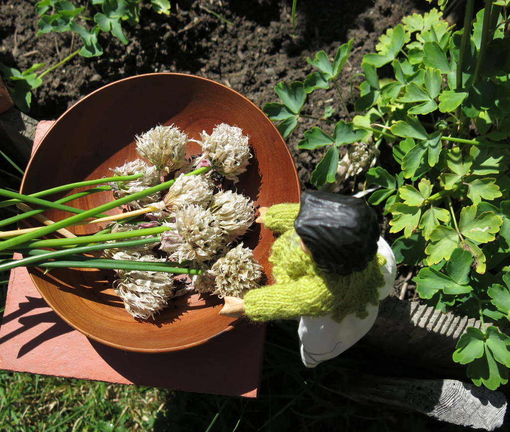 I like chive seeds for a delicate oniony flavour; I can’t eat onions without digestive problems, so any good substitute is welcome. That was a good seed harvest, lots of seed for both eating and planting for next year.