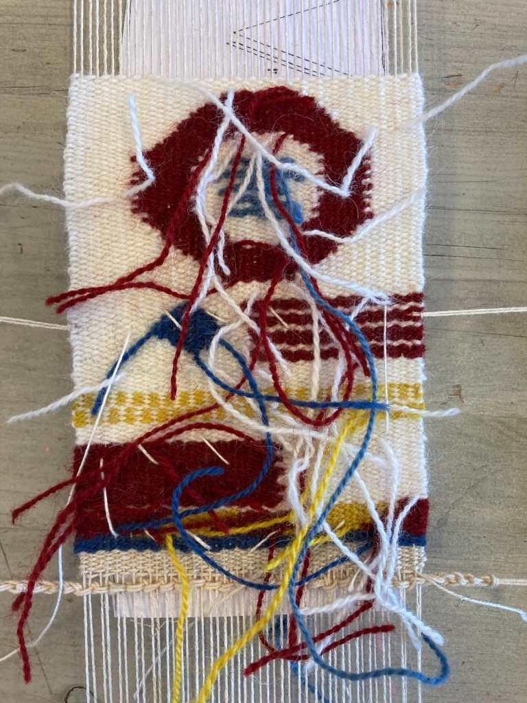 This is where I stopped. There is a whole technique for dealing with the warps after the weaving comes off the frame, which I hope to remember when that step comes…