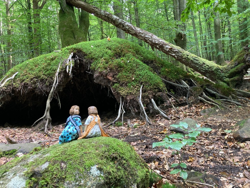Look at Coriander and Arianell in the backpack – so sweet! I am glad no trolls popped out of the potential troll cave!