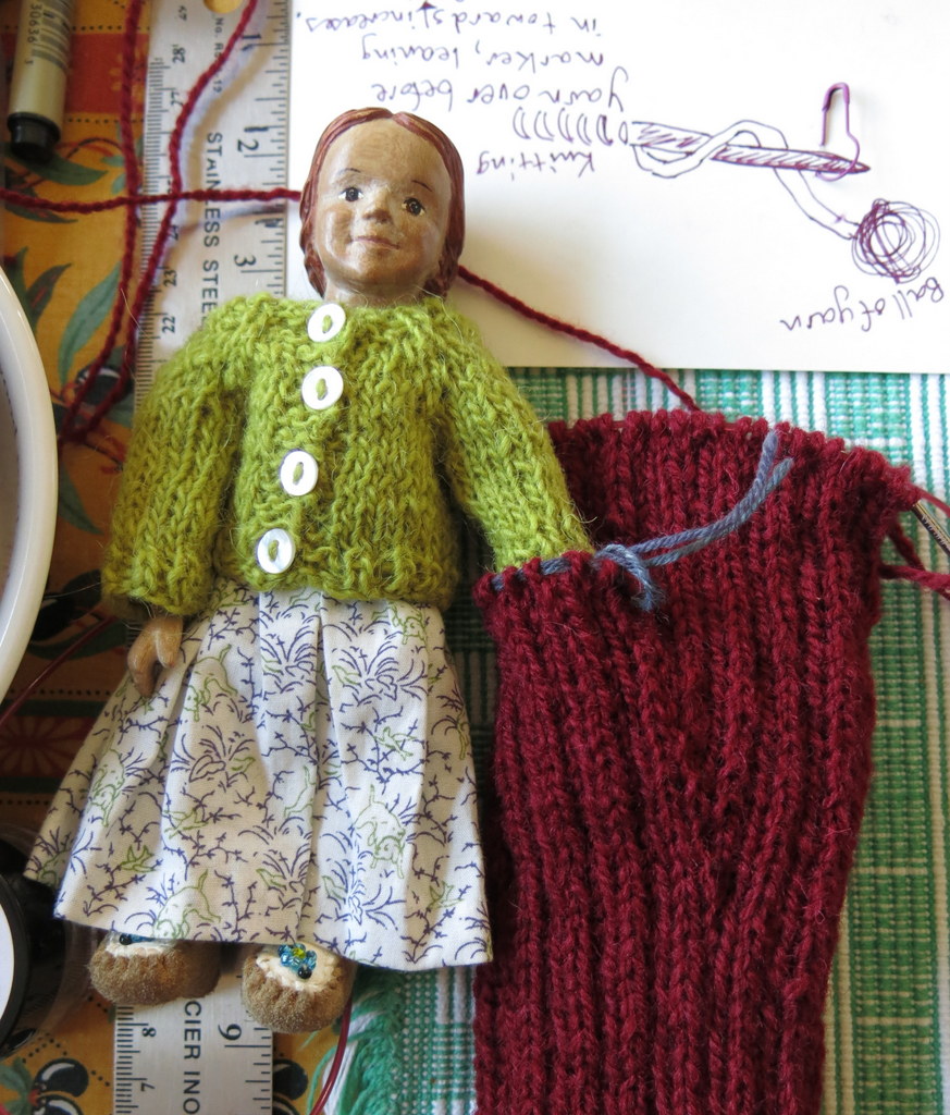 Floradora loves the red yarn that I bought at the Nordiska Museet in Stockholm.