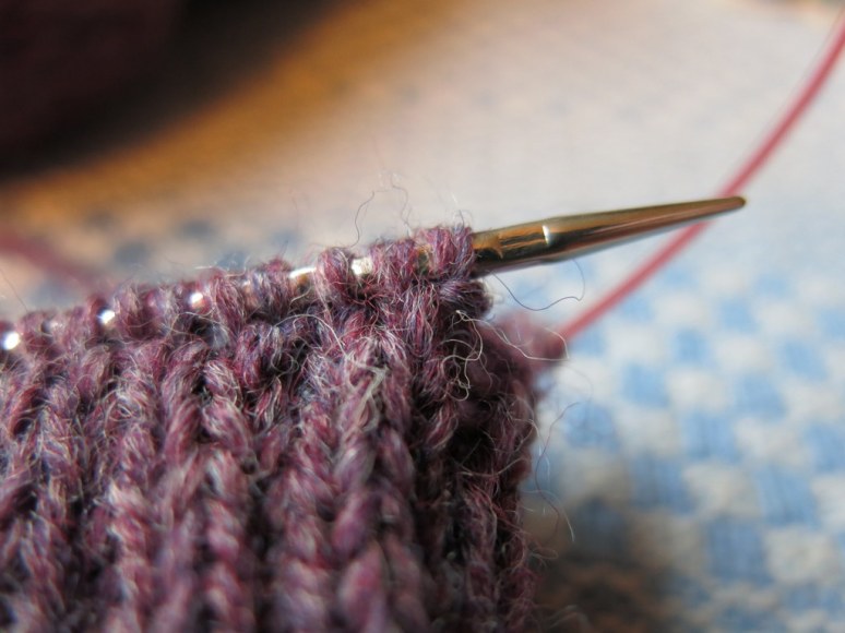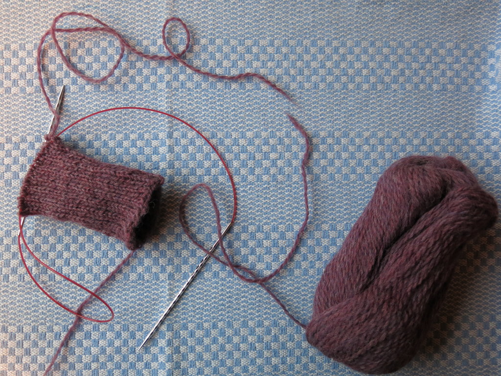 A ball of yarn saved from the scrap heap – hurrah. This yarn has been discontinued, but it’s colour name is Brombeere, which means blackberry in German…
