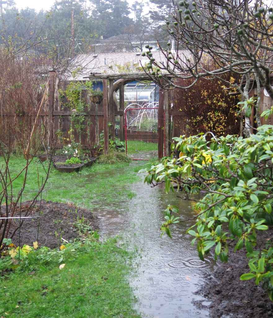 And this is exactly why we bought a house on a hill. Everything runs downwards and away from us. Having said that, I’d like to install a french drain in front of the chook yard; there’s a small depression there which always fills to ankle deep in the monsoon weather.