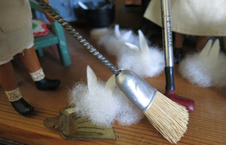 …but their very favourite Spring Cleaning activity is herding dust bunnies – luring them out of corners, out from under things, and from behind furniture…