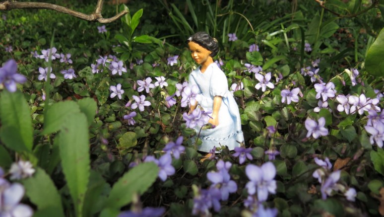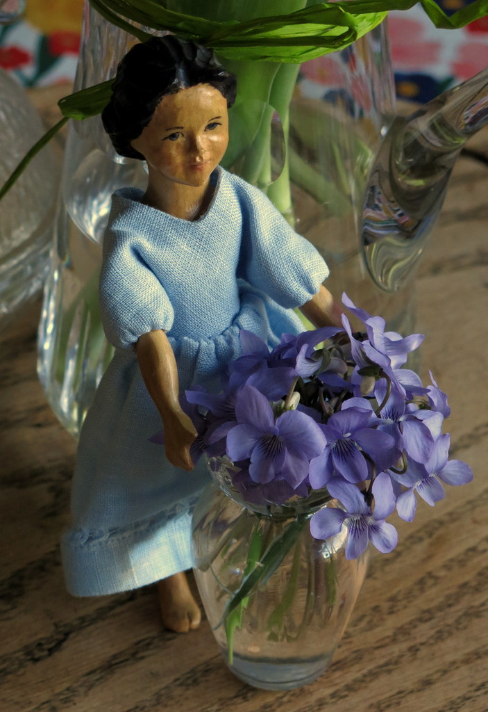 …and a tussie-mussie of violets is enough to scent the Hitty cupboard with sweetness.