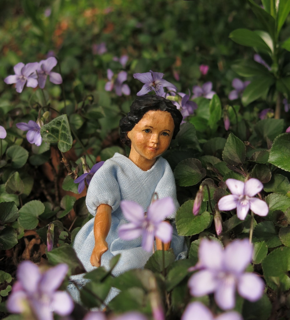 …and a tussie-mussie of violets is enough to scent the Hitty cupboard with sweetness.