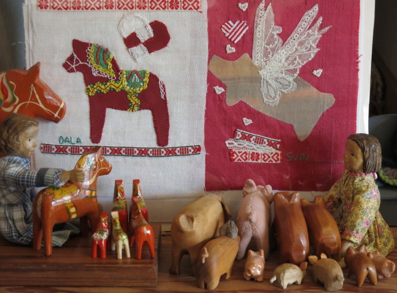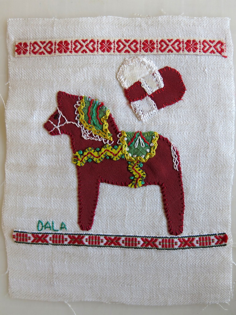 • Thanks very much! I am glad you liked the Dalahäst, it was harder to make an embroidered fabric one than I thought it would be. I have one that my faster Anna gave me in 1963, and more horses have arrived to keep it company over the years!