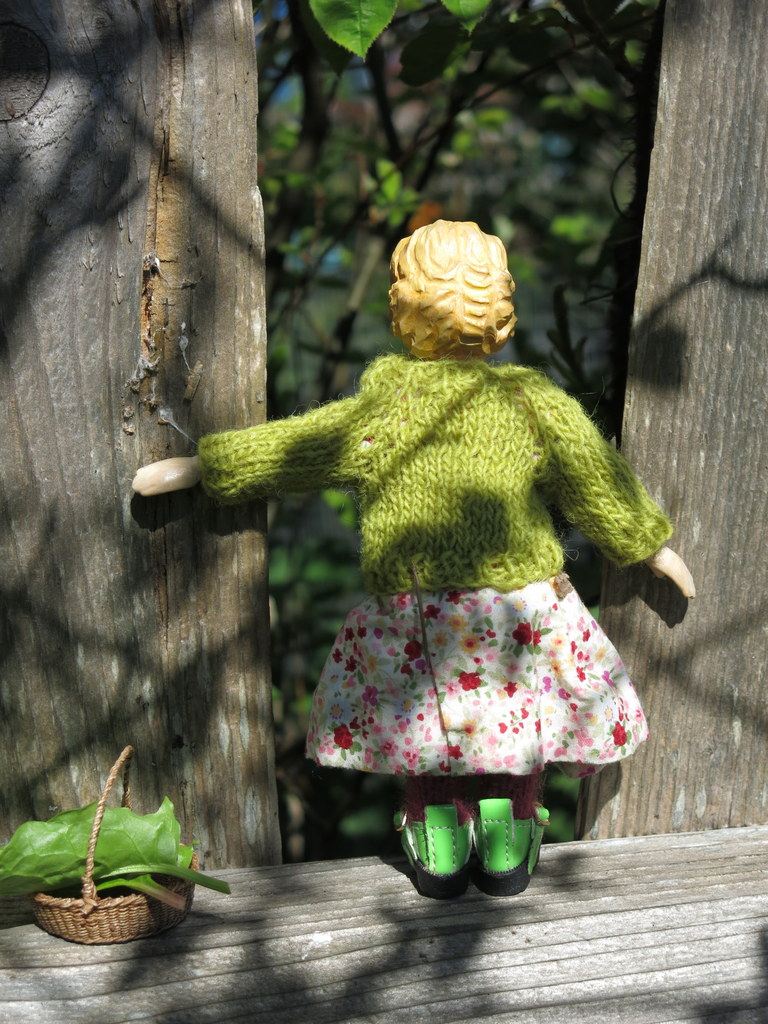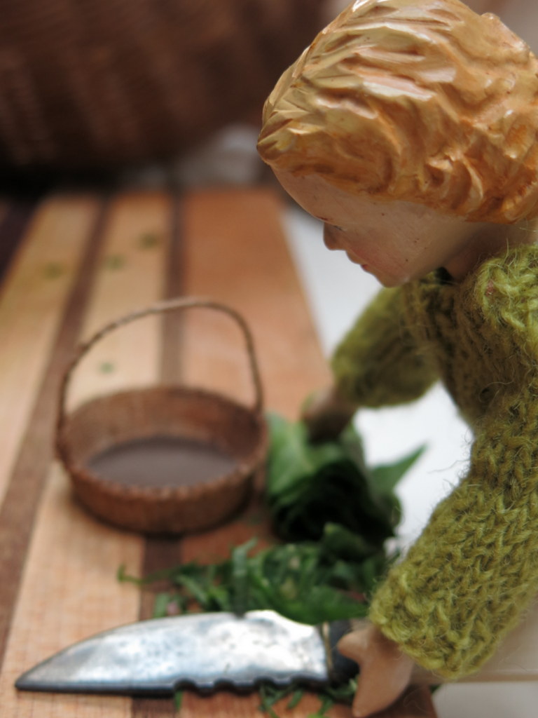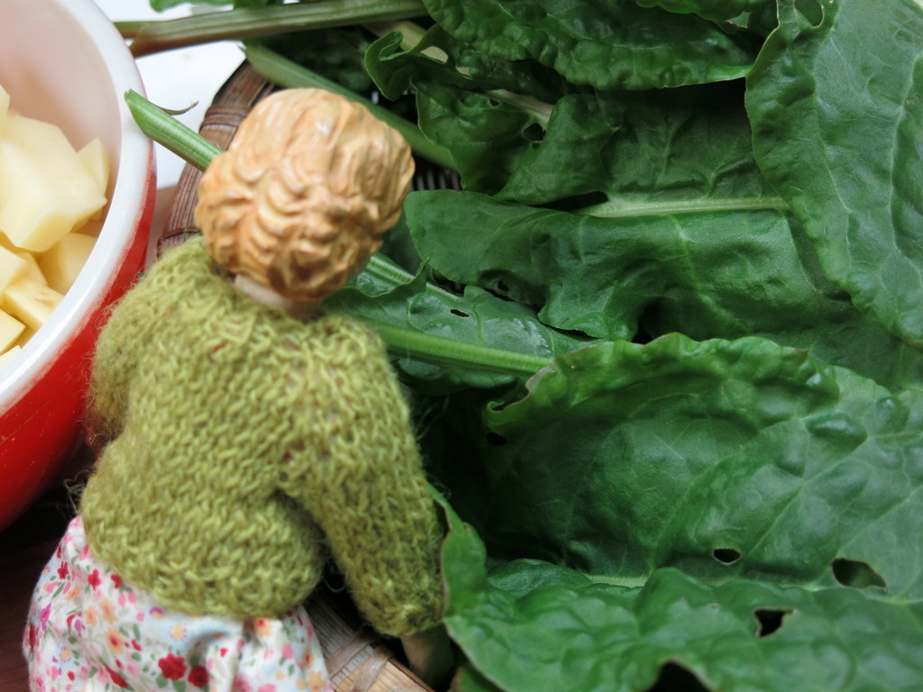 A glorious April day and Henrietta went the garden with her collecting basket – picking sorrel…