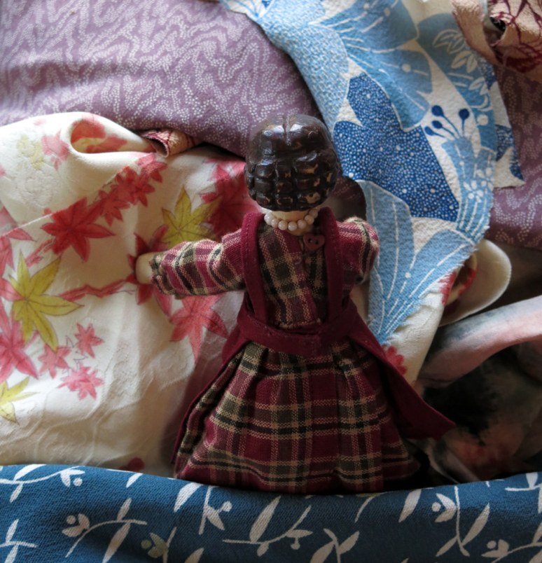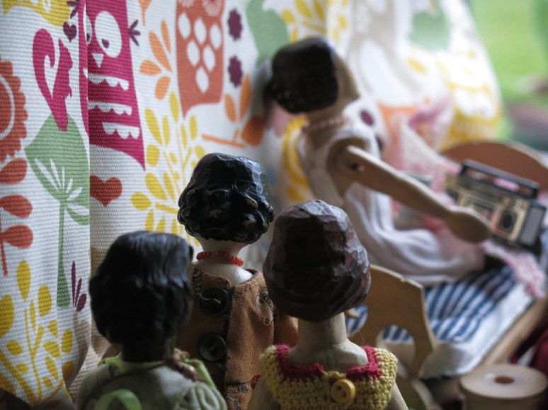 Our one-block-a-month quilt is coming along, and now that it is June, Constance and I can move on to Quilt Square #6. We made a little masking card with a one-quilt-square window in it so we can see the pattern shapes without being distracted by the other bits of the design…