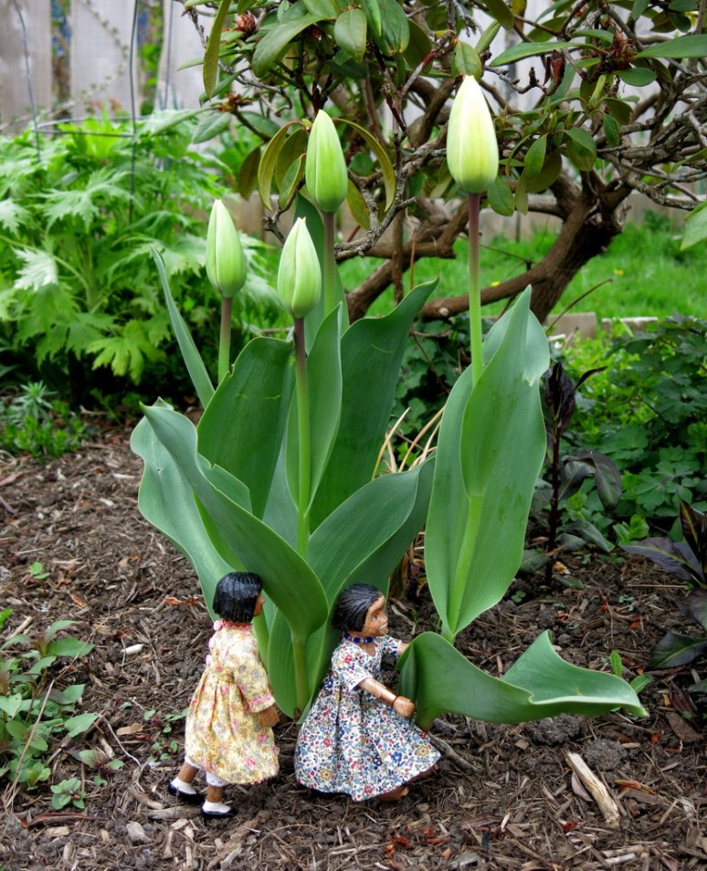 We are so glad that our Tulips are growing, and budding – but they look like they are going to be plain old yellow…not an exotic red with yellow stripes like the picture on the label…