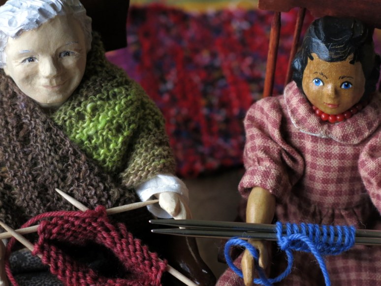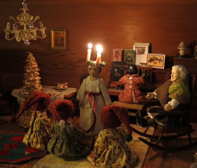 The Quimper Hitty human’s mormor taught her to make woven paper star Ornaments…now the Hitty’s mormor is teaching Floradora and Tipsy how to make them…